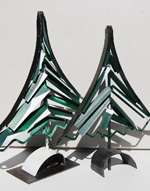 Non-FigurativeOne of my most important art friends, Paul Marco, never painted his work. He only applied a rust inhibitor, Penetrol. Wanting to follow a mentor in some direct manner, I finished the surface of my sculptures in the same way for many years. I began to add color to my work very slowly. The decision whether or not to use color is of great importance. Sometimes the sculpture’s subject and meaning requires a complete detachment from any color. Other times I use some color but leave a part of the steel in it’s natural state. I once did a thin tall sculpture with sharp angles and jagged edges called “The Checkered Past” which I gave to a friend, Ken. We had been joking about the twists and turns of our lives, and how chance and accidents can be so significant in life. “The Checkered Past” was done without color, during early spring when I was seeing bright yellow forsythias sprouting up after a long winter. After completing “The Checkered Past” piece, the basic tall, thin form became an inspiration for a different piece “Forsythia” which I painted, and it turned into a series. (Images #6 and #7) I was studying Russian Constructivism after having seen a gallery exhibit with Vladimir Tatlin’s “Model of the Monument to the Third International.” For the next two years, I worked on two “Constructivist” period pieces. They are both formatted as a picture frame tilted at a 45 degree angle on top of an I-Beam. It took over 18 months to construct and color them both. (See Images #1 - #5). After completing them, I felt like changing my name to my maternal grandfather’s original family name, Borohuvitch, which was lost in the immigration process. When I study the works of a particular artist, I am sometimes driven to create a piece or pieces similar to their style. Examples of such “Homages” shown in this gallery are ones I did in honor of Sonia Delaunay, Hans Arp, and Jackson Pollack (#20). Creating these works gave me the opportunity to feel the essence of their work while making them. I would often create a variation of their piece that would partially include my own ideas, or combine a number of their images together with my own shapes. (See Arp pieces, #13 – #15) I once purchased an abstract lithograph by Sonia Delaunay; I was thrilled with the quality of the color and the color’s juxtapositions that make the images appear somewhat cubist through the use of color. I then imagined what it would be like if one of her vivid pieces was a sculpture. It begged to be done and I did it. (#16, # 17) Thank you Sonia Delaunay. I was quite proud of my configuration of a spinning pine tree. I went a bit overboard after completing it and received a patent on the spinning design. Please click on images thumbnails for larger view: